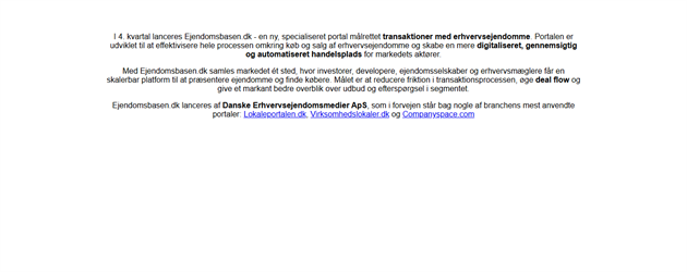 Ejendomsbasen.dk er den nye markedsplads, der gør det hurtigt, enkelt og effektivt for købere og sælgere af erhvervsejendomme at finde hinanden. Uden unødige mellemled, uden spild af tid og uden ekstra omkostninger.