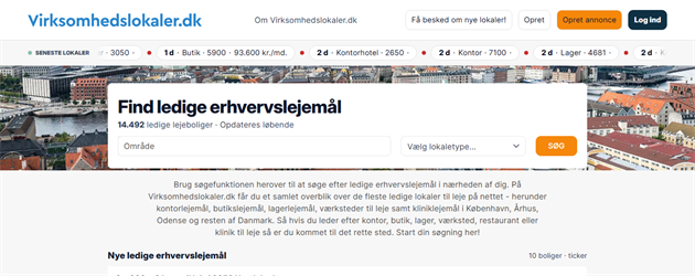 Virksomhedslokaler.dk er en stor nicheportal, der er specialiseret i udlejning af mindre erhvervslokaler under 500 m2.